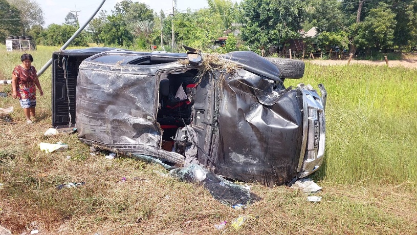 งานป้องกันปราบปราม งานสืบสวน งานจราจร อุบัติเหตุรถยนต์เสียหลักพลิกคว่ำลงข้างทาง มีทรัพย์สินของทางราช