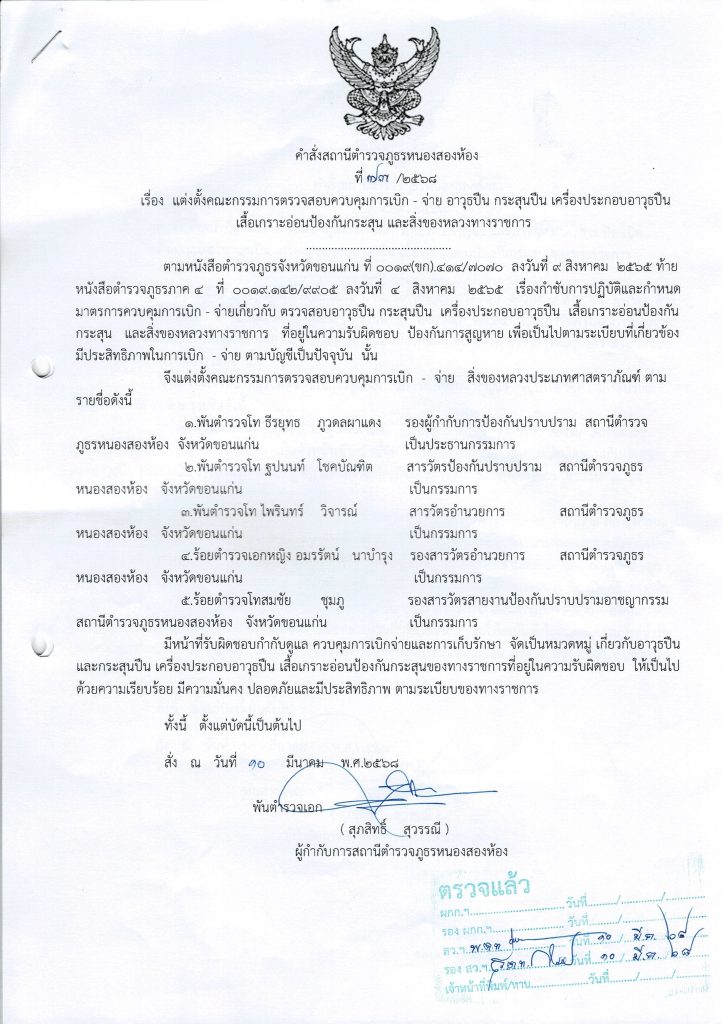 เรื่อง แต่งตั้งคณะกรรมการควบคุมการเบิกจ่าย ตรวจสอบอาวุธปืน กระสุนปืน เครื่องประกอบอาวุธปืน