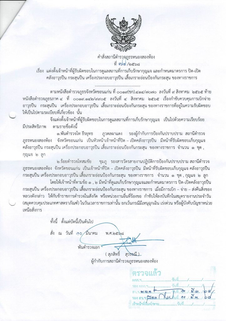 คำสั่งสถานีตำรวจภูธรหนองสองห้อง